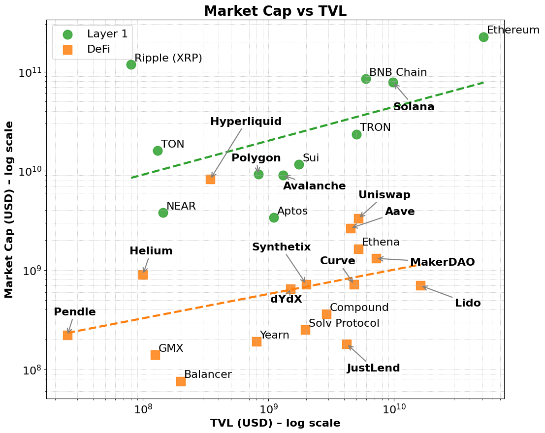 To be fair, that premium is genuine. Layer 1 networks such as Ethereum, Solana, and BNB consistently achieve higher valuation multiples compared to metrics like Total Value Locked (TVL) and fee generation. These networks benefit from a broader market narrative that favors infrastructure over applications and platforms over products.